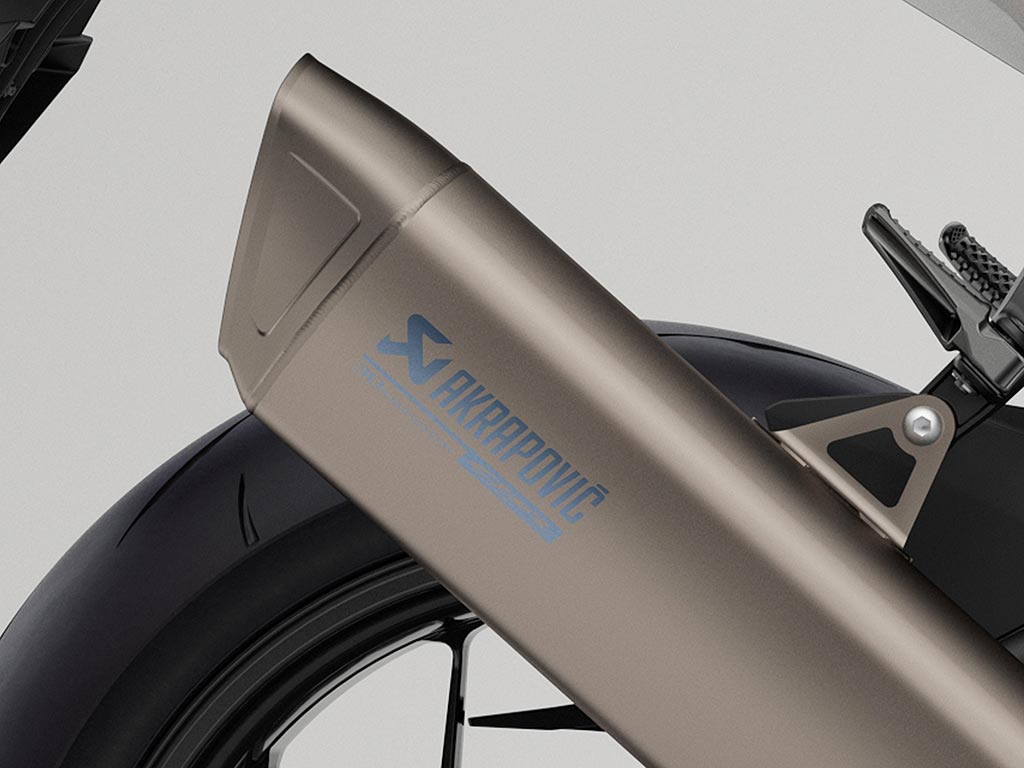 Les collecteurs du système d’échappement 4 en 2 en 1 adoptent une forme ovale tandis que le silencieux a été développé en collaboration avec l’équipementier Akrapovic.