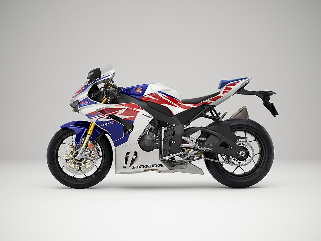Pour célébrer le modèle originel de 1992, le millésime 2022 de la CBR1000RR-R Fireblade SP sera disponible en version limitée, revêtue d’une peinture “Tricolore” conçue par M. Hiroaki Tsukui, déjà responsable du design original. Immédiatement reconnaissable, le graphisme historique et ses fameux «coups de pinceau » ont été préservés pour rendre hommage à l’original. La selle passager bleue poursuit la thématique.