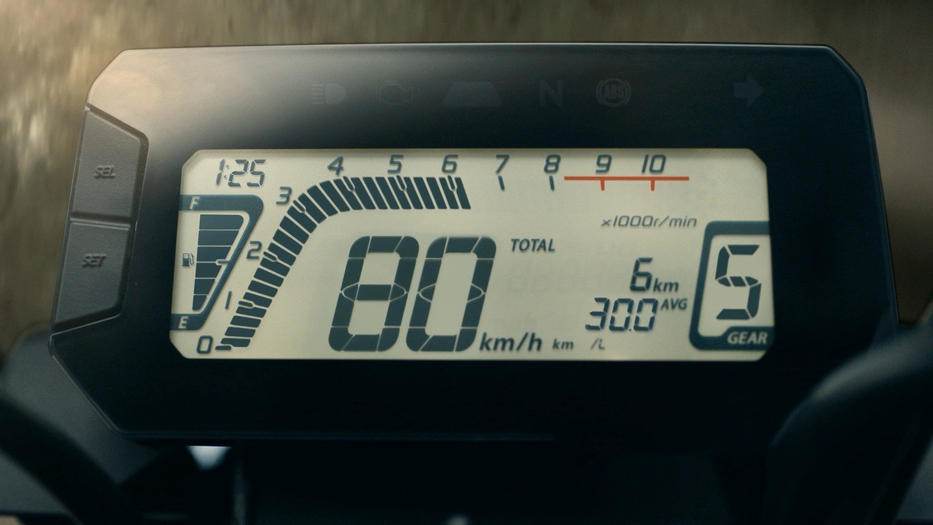 Facile à lire en dépit de sa compacité, l’instrumentation digitale délivre toutes les informations nécessaires : vitesse, régime moteur et rapport engagé, double totalisateur, niveau de carburant et heure. La remise à zéro des totalisateurs journaliers, le réglage de l’heure ou la permutation entre les différents totalisateurs s’effectuent grâce aux boutons qui se trouvent de part et d’autre de l’écran.