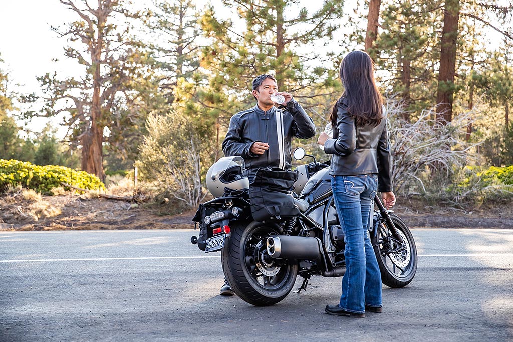 La nouvelle CMX1100 Rebel revendique une double personnalité. Elle a été dessinée pour pouvoir rouler en tout confort mais elle sait aussi, lorsqu’une série de virages se dessine à l’horizon, se transformer en une moto particulièrement excitante.