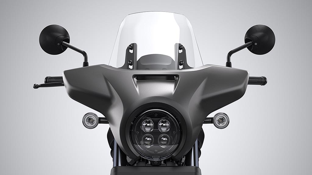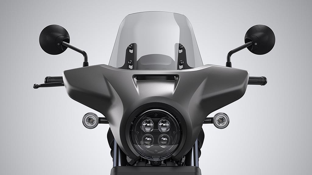 En phase avec son époque, le style de la Rebel 1100 se distingue par ses volumes et son caractère minimaliste ; les pneumatiques avant et arrière sont couverts par des garde-boue en métal alors que l’optique circulaire mélange forme d’hier et technologie à diodes d’aujourd’hui, faisant écho à l’instrumentation à cristaux liquides. Les aspects pratiques ne sont pas négligés avec une prise USB-C disposée dans l’espace de rangement aménagé sous la selle.