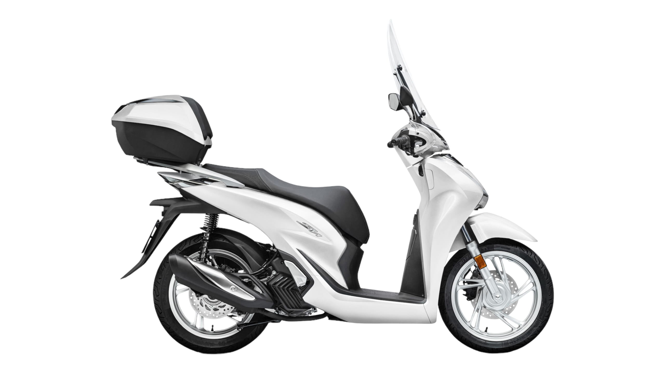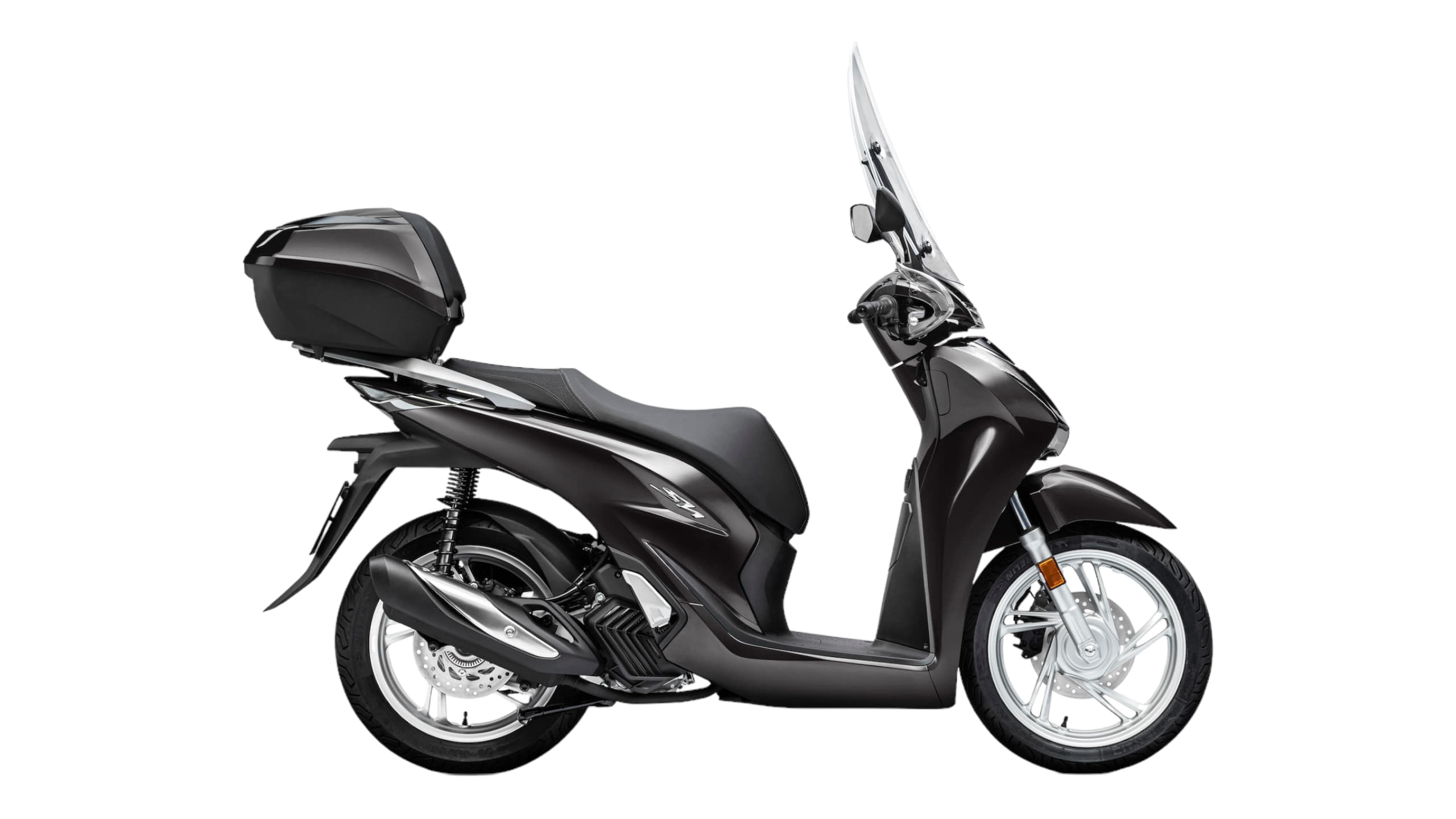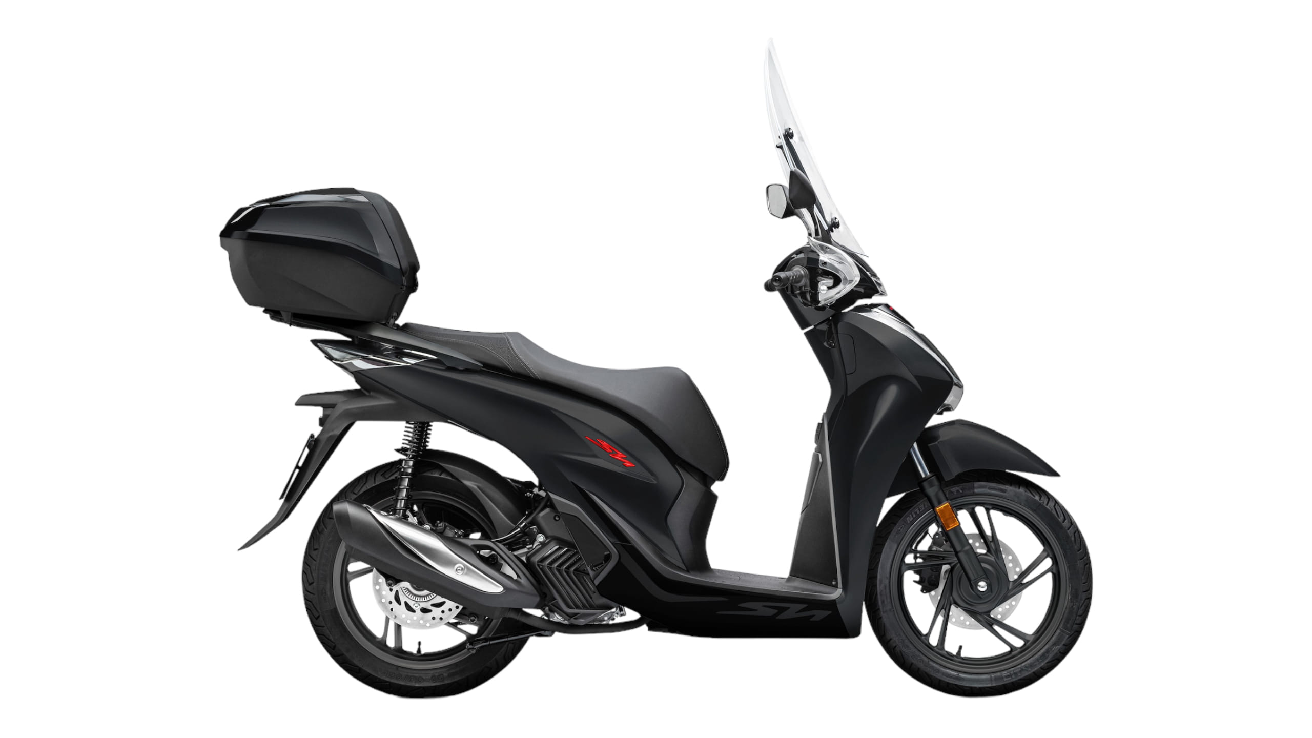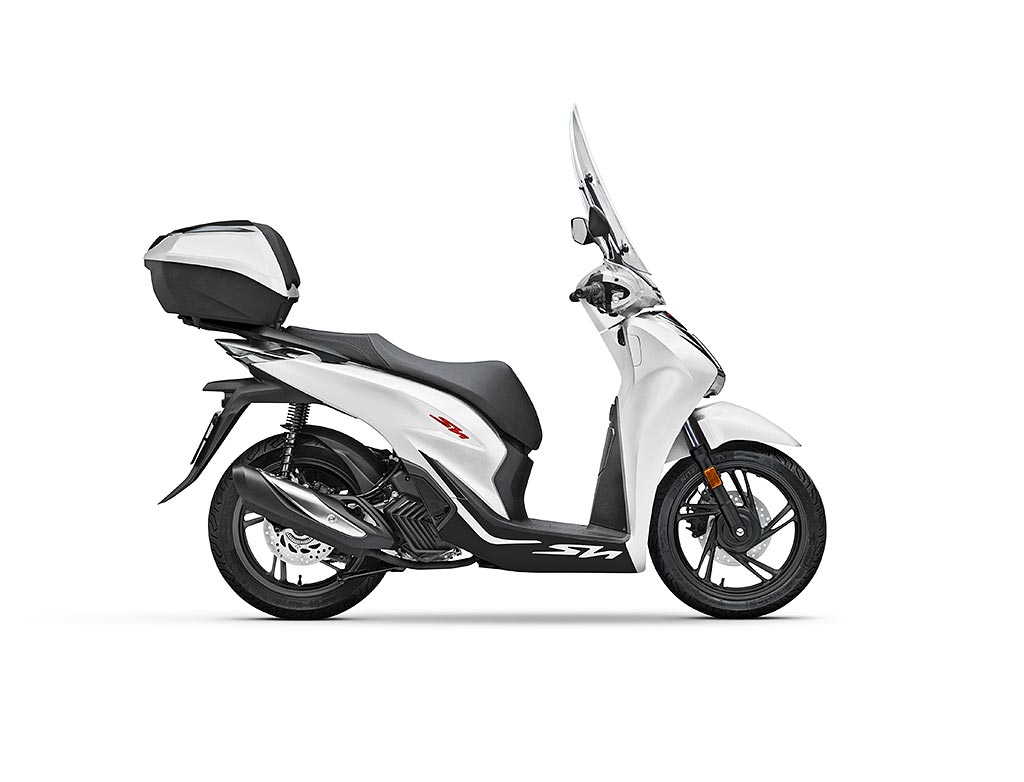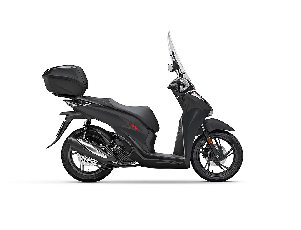 Le SH125i 2022 est commercialisé avec le Smart Top Box. 3 couleurs sont proposées en 2022, dont 2 nouveautés avec logos rouges et jantes noires :