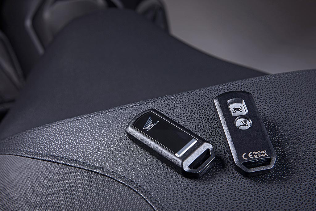 Le système de démarrage Smart Key du Forza 350 contrôle le contacteur principal et l’accès au coffre, mais aussi l’accès au top-case de 45 l disponible en option.